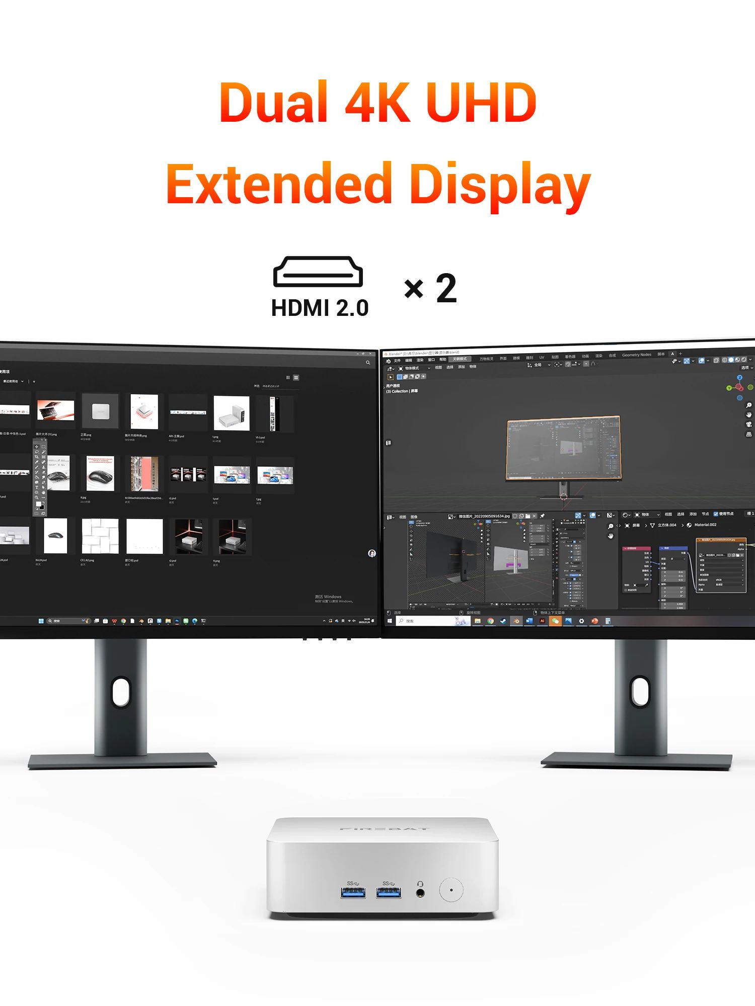 This compact mini desktop supports dual 4K UHD extended displays through 2× HDMI 2.0, which is great for productivity (docs + browser, dashboards + terminals, etc.). You also get a strong selection of I/O for accessories and wired reliability: