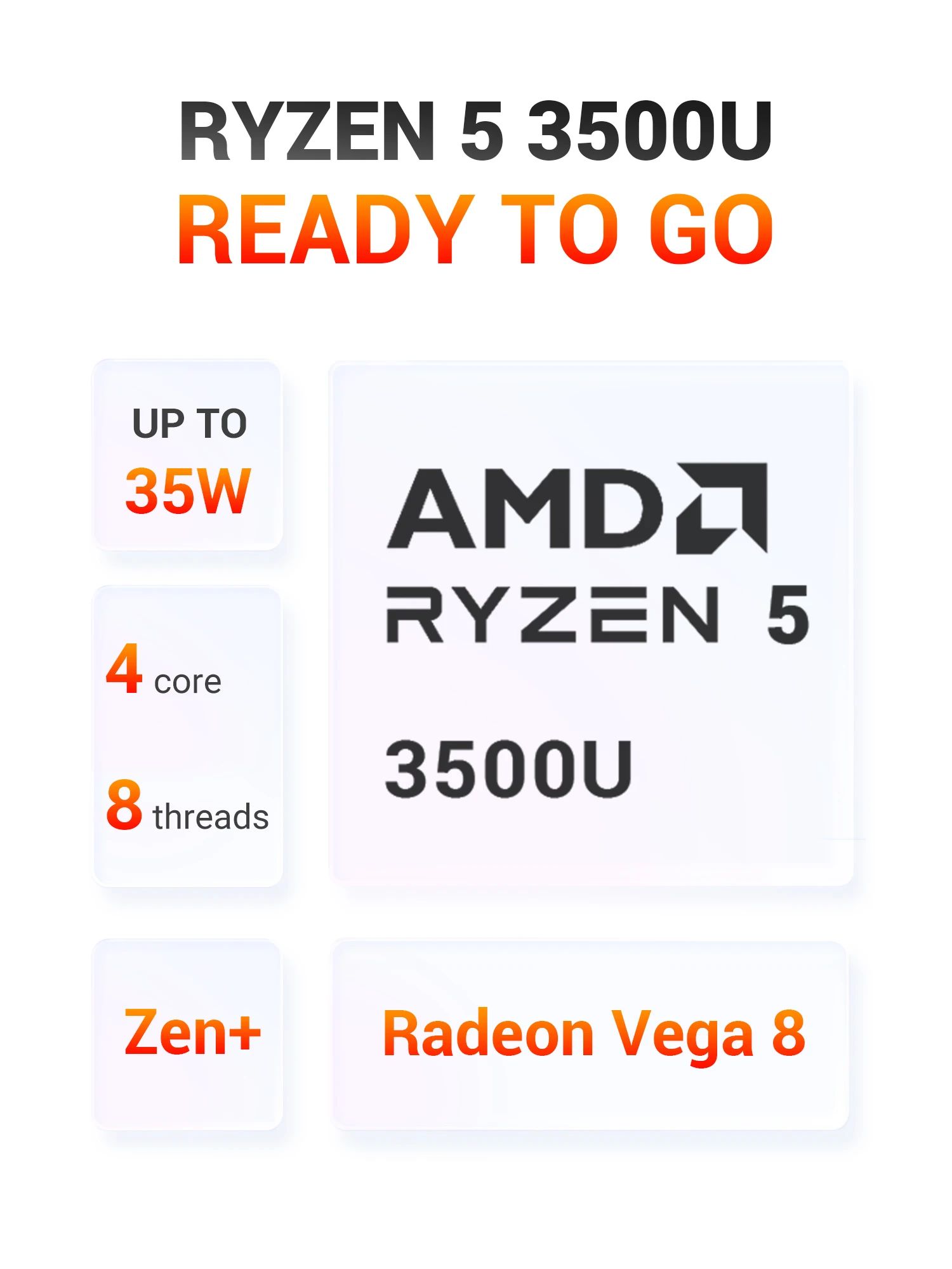At the core, you get an AMD Ryzen 5 3500U (4 cores / 8 threads) with Radeon Vega 8 graphics, giving you smooth everyday performance for browsing, Office apps, light photo work, and multitasking. It also supports three power profiles (15W / 25W / 35W), so you can balance quiet operation and extra speed depending on what you’re doing.