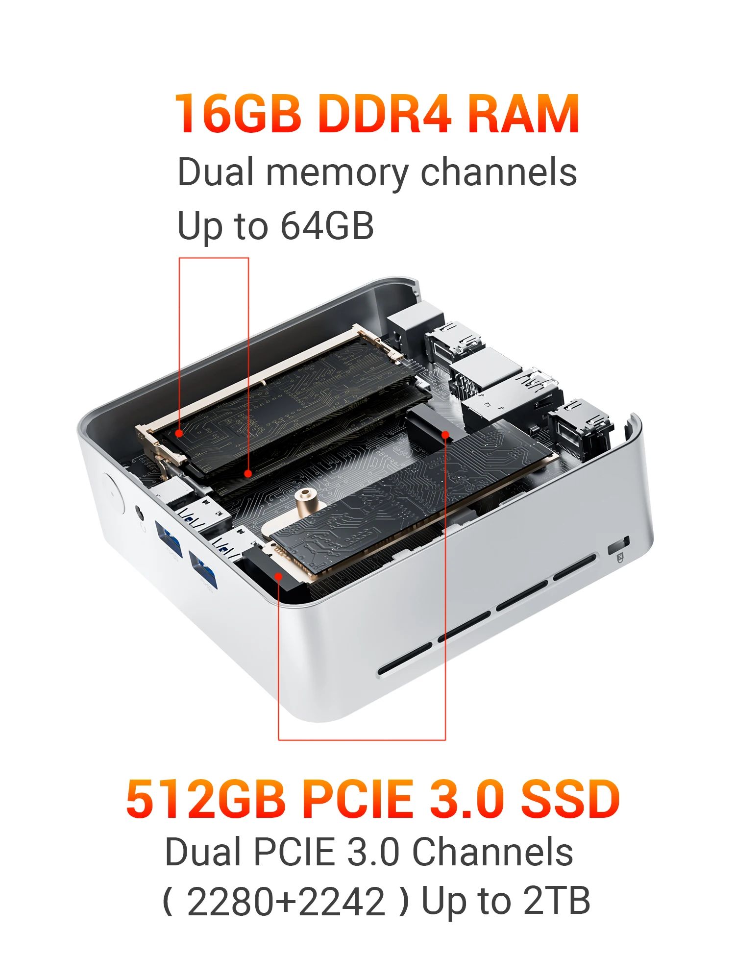 Storage: 512GB PCIe 3.0 SSD with dual PCIe channels (2280 + 2242), expandable up to 2TB so you can grow without replacing the whole system.
